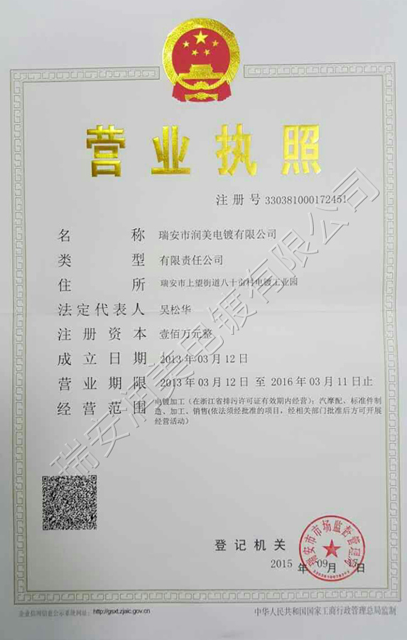 潤美電鍍營業執照